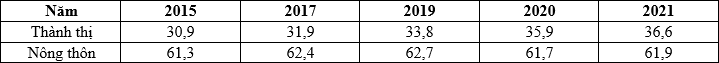Cho bảng số liệu: SỐ DÂN THÀNH THỊ VÀ NÔNG THÔN NƯỚC TA, GIAI ĐOẠN 2015 - 2021 (Đơn vị: