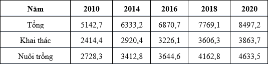 SẢN LƯỢNG THỦY SẢN CỦA NƯỚC TA, GIAI ĐOẠN 2010 - 2020