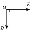 Một sóng điện từ lan truyền trong không gian, tại điểm M có sóng truyền qua vecto cường độ điện trường \(\overrightarrow E \)và vecto cảm ứng từ \(\overrightarrow B \)được biểu diễn như hình vẽ. Vecto vận tốc truyền sóng tại M