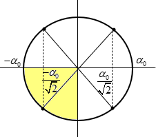 Tại nơi có gia tốc trọng trường g, một con lắc đơn dao động điều hòa với biên độ góc α0 nhỏ. Lấy mốc thế năng ở vị trí cân bằng. Khi con lắc chuyển động nhanh dần theo chiều dương đến vị trí có động năng bằng thế năng thì li độ góc α của con lắc bằng