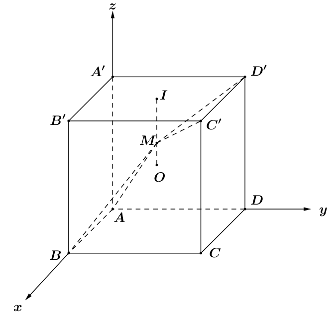 Cho hình lập phương ABCD.A’B’C’D’ có tâm O. Gọi I là tâm của hình vuông A’B’C’D’ và M