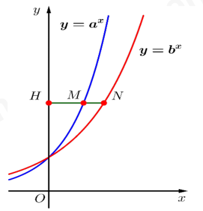 Cho các hàm số \(y = {a^x}\) và \(y = {b^x}\) với a, b là những số thực dương khác 1, có đồ thị