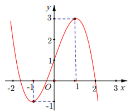 Cho hàm số \(y = f\left( x \right)\) có đồ thị là đường cong trong hình vẽ dưới đây. Giá trị lớn nhất của hàm số đã cho trên đoạn \(\left[ { - 1;1} \right]\) bằng bao nhiêu?