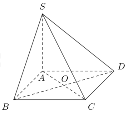 Cho hình chóp S.ABCD có đáy là hình chữ nhật, \(AB = 2a,\,\,AD = a\sqrt 3 \), cạnh bên SA vuông góc