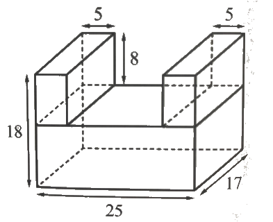 Hình dưới đây được ghép bởi 3 hình hộp chữ nhật. Tính thể tích của hình được ghép với