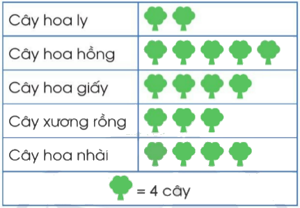 Quan sát biểu đồ tranh sau rồi trả lời câu hỏi:Số cây bán được trong ngày thứ BảyTrong
