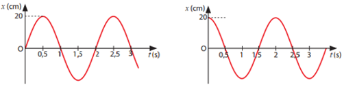 Đồ thị li độ - thời gian của hai vật được biểu diễn như hình vẽ:Hai dao động này khác