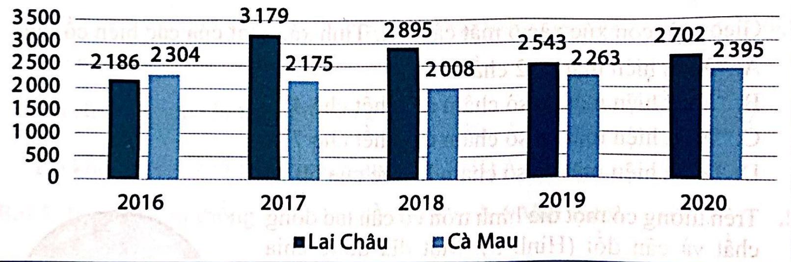A: “Tại năm được chọn lượng mưa ở Cà Mau cao hơn ở Lai Châu”;