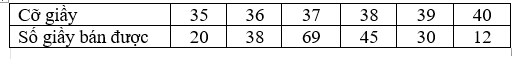 Một cửa hiệu bán giầy nữ sau tháng đầu tiên khai chương thống kê được số lượng các loại cỡ giầy đã bán như sau (đơn vị tính: đôi)