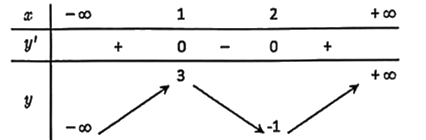 Cho hàm số \(f\left( x \right) = a{x^3} + b{x^2} + cx + d\,\,\left( {a \ne 0} \right)\) có bảng biến thiên