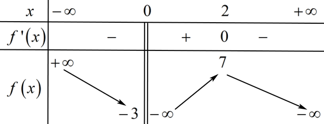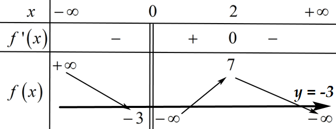 Cho hàm số \(y = f(x)\) xác định trên \(\mathbb{R}\backslash \{ 0\} \) và có bảng biến thiên như hình vẽ