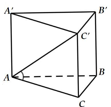 Cho hình lăng trụ đều ABC.A’B’C’ có \(AB = \sqrt 3 ,\,\,AA' = 1\). Góc giữa AC’ và (ABC) bằng