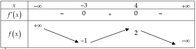 Cho hàm số \(y = f(x)\) có bảng biến thiên như sau: