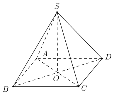 Cho hình chóp tứ giác đều \(S.ABCD\) có tất cả các cạnh đều bằng \(a\). Góc giữa đường