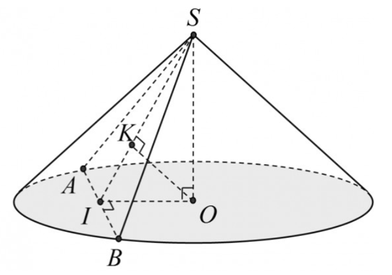 Cho hình nón có thiết diện qua đỉnh là tam giác \(SAB\) vuông tại \(S\), (\(A,\,\,B\) thuộc đường