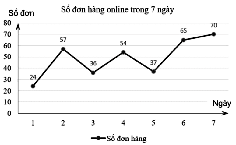 Biểu đồ đoạn thẳng trong hình vẽ dưới đây cho biết số lượng đơn đặt hàng online trong 7