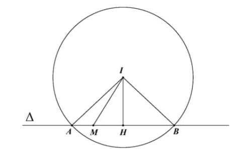 b) Xét các đường thẳng \(\Delta :2mx + (m - 1)y + 3m - 1 = 0\) (m là tham số thực) cắt đường tròn (C) tại hai điểm A, B. Biết \(I\) là tâm của đường tròn \((C)\), tính diện tích tam giác IAB khi AB nhỏ nhất.