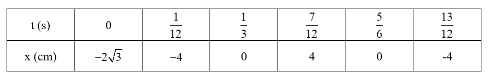Một vật dao động điều hoà theo phương trình \(x = 4\cos \left( {2\pi t + \dfrac{{5\pi }}{6}} \right)\,\,\left( {cm} \right)\). Hãy vẽ đồ thị (x – t) của dao động trên.