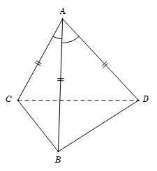 Cho tứ diện \(ABCD\) có \(\angle CAB = \angle DAB = {60^0},\,\,AB = AD = AC\) (tham khảo hình vẽ