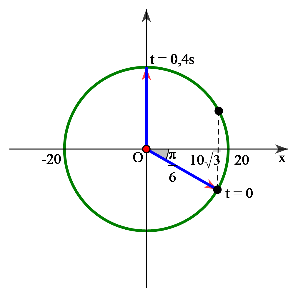 Đồ thị li độ theo thời gian của một chất điểm dao động điều hòa được mô tả như hình vẽ. Viết phương trình dao động của chất điểm.
