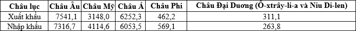 Theo bảng số liệu, cho biết những châu lục nào sau đâyxuất siêu?