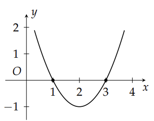 Cho hàm số \(f(x) = a{x^2} + bx + c\) có đồ thị như hình bên. Hãy tìm tất cả giá trị của \(x\) để \(f(x) < 0\).