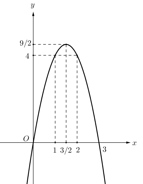 Cho hàm số \(y = - 2{x^2} + 6x\) có đồ thị \((P)\).