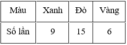 Một chiếc hộp kín có một quả bóng xanh, một quả bóng đỏ và một quả bóng vàng. Bạn An lấy ra ngẫu nhiên một quả bóng, ghi lại màu rồi trả bóng vào trong hộp. Bạn An thực hiện như vậy 30 lần và được kết quả như sau: