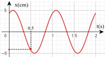 Cho đồ thị x – t của một vật dao động điều hòa như hình vẽ. Hãy xác định gia tốc của vật tại thời điểm t = 0,5s. Lấy \({\pi ^2} = 10\).