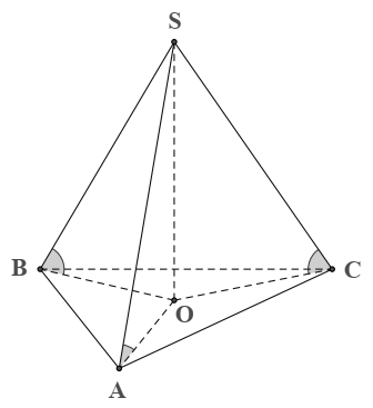 Gọi \(O\) là hình chiếu của \(S\) lên mặt phẳng \((ABC)\) => O là tâm đường tròn ngoại tiếp tam giác ABC.