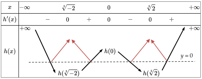 Đặt \(h(x) = f(x) - \dfrac{1}{8}{x^4} - x\), lập BBT của hàm h(x).