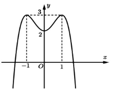 Cho hàm số \(y = a{x^4} + b{x^2} + c,\,\,(a,b,c \in \mathbb{R})\) có đồ thị là đường cong như hình