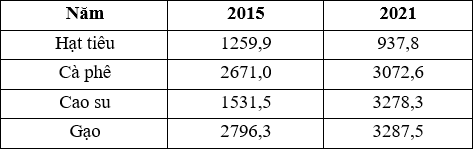 Cho bảng số liệu: GIÁ TRỊ XUẤT KHẨU MỘT SỐ MẶT HÀNG CỦA NƯỚC TA, NĂM 2015 VÀ NĂM