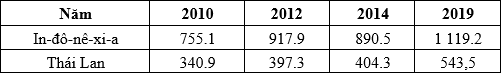 Cho bảng số liệu: GDP CỦA IN-ĐÔ-NÊ-XI-A VÀ THÁI LAN GIAI ĐOẠN 2010 -2019 (Nguồn: Niên giảm