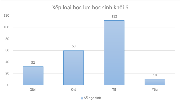 Biểu đồ cột dưới đây thể hiện xếp loại học lực của khối 6 của một trường THCS. Dựa