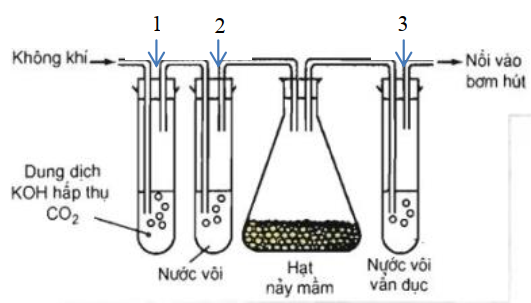Hình vẽ sau mô tả thí nghiệm về hô hấp ở thực vật. Phát biểu nào sau đây đúng về thí