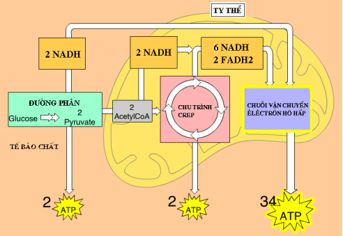 Kết thúc quá trình đường phân, từ 1 phân tử glucose, tế bào thu được