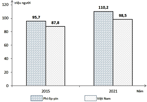 Cho biểu đồ sau:DÂN SỐ CỦA VIỆT NAM VÀ PHI-LIP-PIN NĂM 2015 VÀ NĂM 2021(Nguồn: Niên giám thống