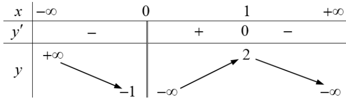 Cho hàm số \(y = f(x)\) xác định trên \(\mathbb{R}\backslash \{ 0\} \), liên tục trên mỗi khoảng xác định và có bảng biến thiên như sau