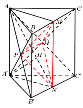 Dựng \(A'H \bot AN\), chứng minh \(A'H \bot \left( {AB'C'} \right) \Rightarrow A'H = d\left( {M,\left( {AB'C'} \right)} \right)\).