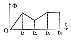 Từ thông \(\Phi \) qua khung dây kín biến đổi theo thời gian t được biểu diễn như đồ thị hình bên. Trong khoảng thời gian nào sau đây trong khung không có dòng điện cảm ứng?