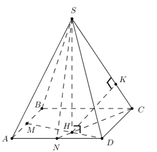 Cho hình chóp \(S.ABCD\) có đáy là hình vuông cạnh \(a\). Gọi \(M,N\) là trung điểm của \(AB,AD\).
