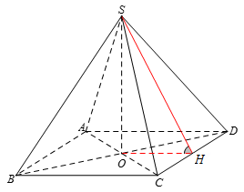 Cho hình chóp tứ giác đều có cạnh đáy bằng \(a\sqrt 2 \) và chiều cao bằng \(\dfrac{{a\sqrt 2