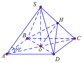 Cho hình chóp đều \(S.ABCD\) có đáy \(ABCD\) là hình vuông cạnh \(a\sqrt 2 \), biết các cạnh bên tạo với đáy một góc \({60^0}\). Gọi \(\varphi \) là góc giữa hai mặt phẳng \(\left( {SAC} \right)\) và \(\left( {SCD} \right)\) khi đó \(\tan \varphi \) bằng?