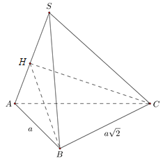 Cho hình chóp \(S.ABC\) có đáy \(ABC\) là tam giác vuông cân tại \(A,\,\,AB = a\). Biết \(\angle SBA =