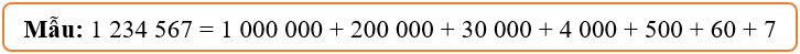 Viết mỗi số sau thành tổng (theo mẫu): 3 184 205, 402 090, 96 042, 80 302 041