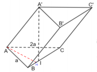 Cho hình lăng trụ \(ABC.A'B'C'\) có đáy \(ABC\) là tam giác vuông tại \(A,AB = a,AC = 2a\) (tham khảo