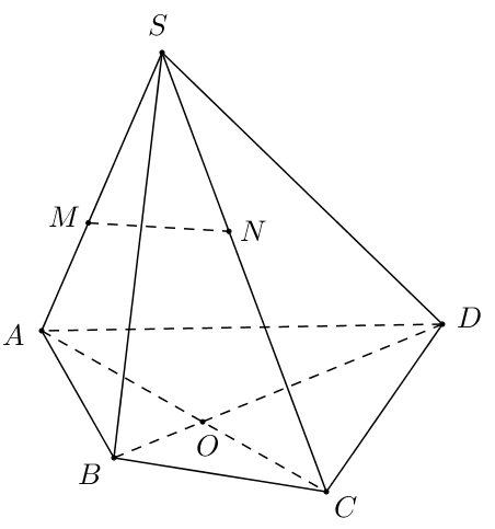 Cho hình chóp S.ABCD, gọi O là giao điểm của AC và BD. Lấy M, N lần lượt thuộc các cạnh SA,