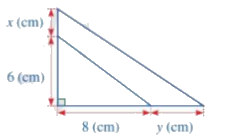 Bạn Bình dự định cắt một miếng bìa có dạng tam giác vuông với độ dài hai cạnh góc vuông lần lượt là 6cm; 8cm. Sau khi xem xét lại, ban Hạnh quyết định tăng độ dài cạnh góc vuông 6cm thêm \(x\left( {{\rm{\;cm}}} \right)\) vă tăng độ dài cạnh góc vuông 8cm thêm y (cm). Viết đa thức biểu thị diện tích phần tăng thêm của miếng bìa theo \(x\) và \(y\).