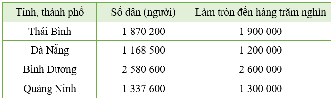 b) Em hãy làm tròn số dân của các tỉnh, thành phố đến hàng trăm nghìn.